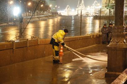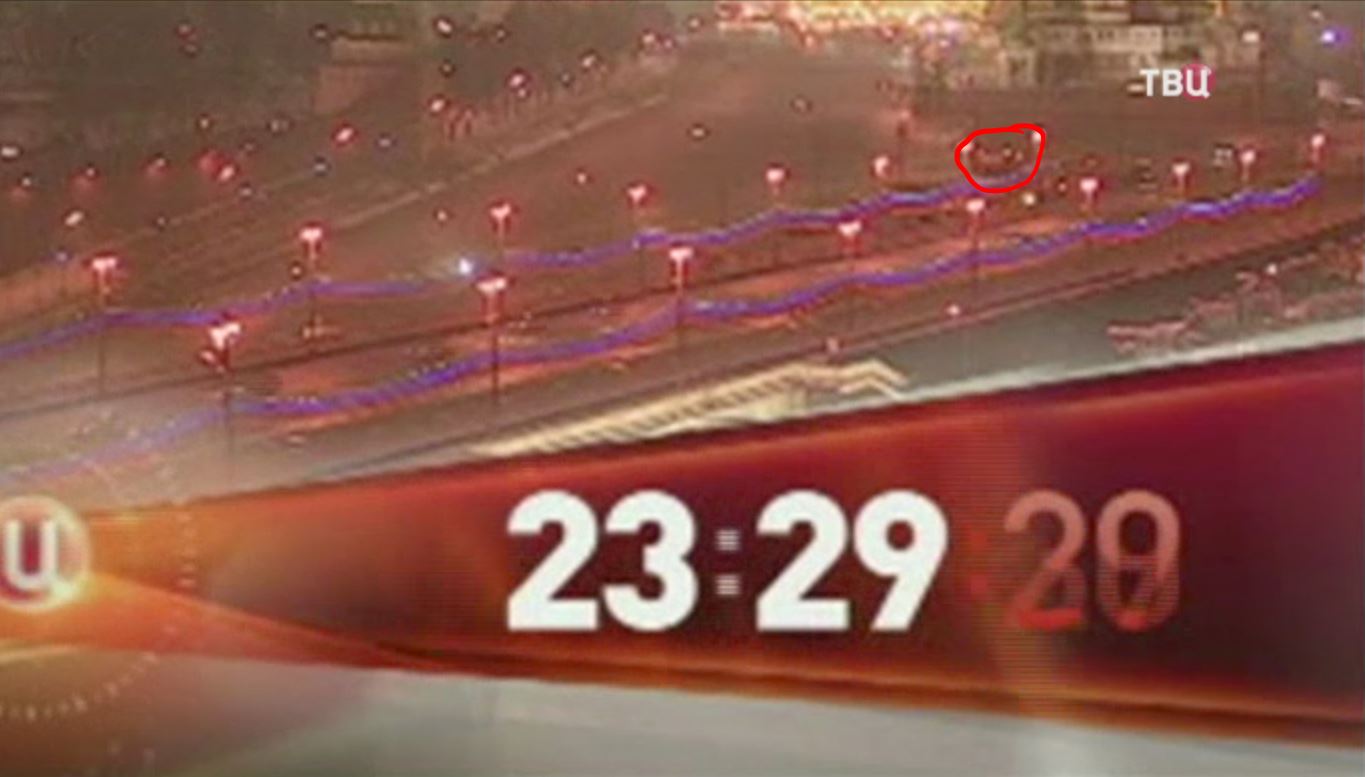 A person can be seen walking BEHIND Nemtsov and before the cleaning car is passing by: