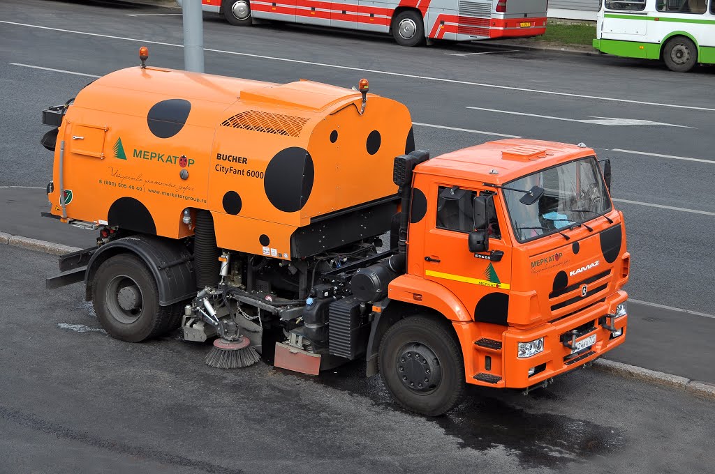 Google search on 'Moscow garbage car' gives this result, which MAY fit the profile of the 'cleaning car' in the video: